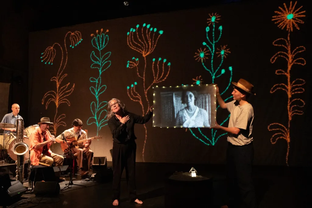 Meret Mohr Millner, quien contribuyó con su talento en la dramaturgia y la interpretación de la obra, comparte que el proceso creativo ha sido un viaje personal y familiar significativo. Originaria de Australia, con raíces suizas y una vida reciente en Chile, Meret expresa que esta obra ha sido una oportunidad para explorar su propia historia familiar y reflexionar sobre el significado de la migración y la colonización. A través de la interpretación de personajes, incluidos su abuelo y su padre, pudo abordar preguntas profundas sobre la experiencia de trasladarse entre continentes y la relación entre decisiones individuales y contextos históricos más amplios.