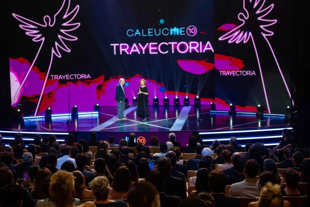 Uno de los momentos más emotivos de la noche fue la entrega del Premio a la Trayectoria a Gloria Münchmeyer y Hugo Medina, reconocidos por su vasta y destacada trayectoria en la actuación. Su legado en el arte y su impacto en el ámbito cultural chileno fueron esenciales en la historia del evento, y su reconocimiento marcó un hito en la celebración del décimo aniversario de los Premios Caleuche. La presidenta de Chileactores, Esperanza Silva, subrayó la importancia de defender los derechos de los intérpretes y la creación artística, enfatizando la necesidad de establecer regulaciones claras frente a los desafíos actuales como el uso de la Inteligencia Artificial en la industria.